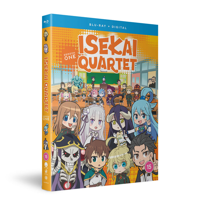 All 12 episodes from the first season of the Japanese anime written and directed by Minoru Ashina. With the help of a magic button, the characters of 'KonaSuba', 'Overlord', 'Re:Zero - Starting Life in Another World' and 'Saga of Tanya the Evil' find themselves transported to a high school in a parallel world. The episodes are: 'Come Together! Quartet', 'Tension! Introductions', 'Deadlock! Classmates', 'Encounter! Classmates', 'Explosion! Talent Show', 'Decision! Class Rep', 'Carry Out! Class Rep', 'Prepare! Field Trip', 'Enjoy! Field Trip', 'Join In! Rivals', 'Work Together! Field Day' and 'Band Together! Quartet'.