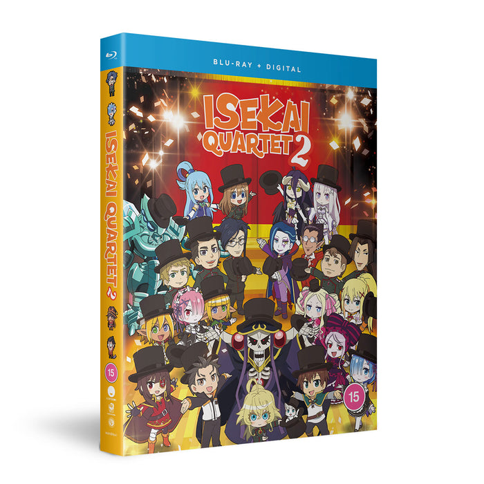 All 12 episodes from the second season of the Japanese anime written and directed by Minoru Ashina. With the help of a magic button, the characters of 'KonaSuba', 'Overlord', 'Re:Zero - Starting Life in Another World' and 'Saga of Tanya the Evil' find themselves transported to a high school in a parallel world. The episodes are: 'Join the Fight! Transfer Student', 'Sneak In! The Principal's Office', 'Uh-Oh! Detention', 'Pinch! Test of Learning', 'Work Hard! Valentine's Day', 'Clash! Dodgeball', 'Excitement! Physicals Day', 'Challenge! Part-Time Job', 'Investigate! First Errand', 'Rise Up! School Festival', 'It Begins! School Festival' and 'The Show Begins! Showtime'.