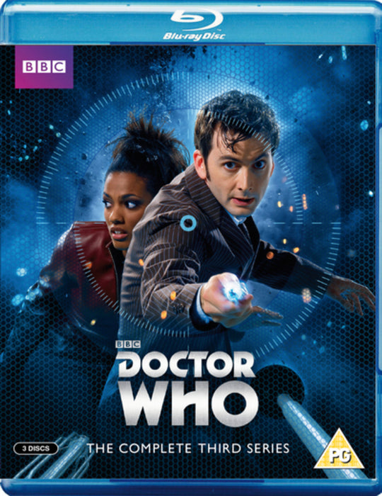 All 14 episodes from the third series of the relaunched sci-fi adventure drama, starring David Tennant as the latest incarnation of the legendary Time Lord. In this series, the Doctor is joined by new companion Martha Jones (Freema Agyeman) as he encounters old enemies including the Daleks and the Master (Derek Jacobi). The episodes are: 'The Runaway Bride', 'Smith and Jones', 'The Shakespeare Code', 'Gridlock', 'Daleks in Manhattan', 'Evolution of the Daleks', 'The Lazarus Experiment', '42', 'Human Nature', 'The Family of Blood', 'Blink', 'Utopia', 'The Sound of Drums' and 'Last of the Timelords'.