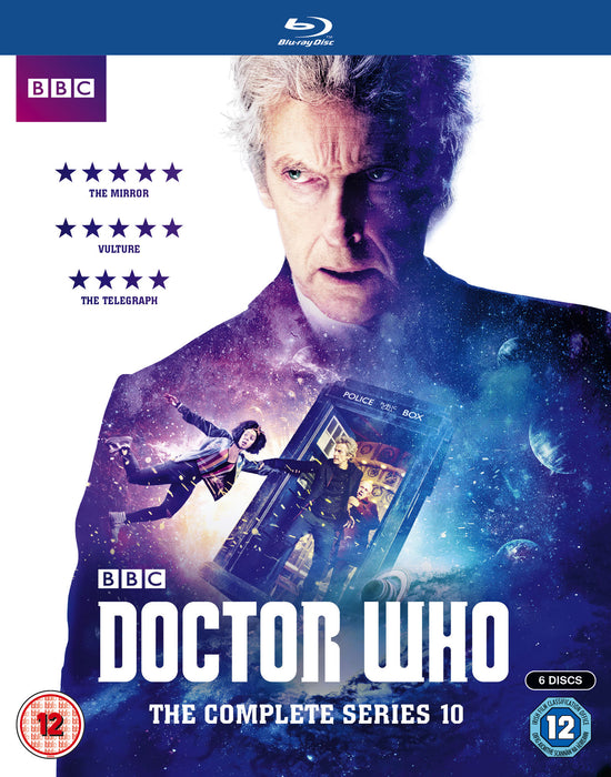 All 12 episodes from the tenth series of the relaunched sci-fi adventure drama, with Peter Capaldi reprising his role as the legendary Time Lord. This time around, the Doctor and Nardole (Matt Lucas) have stationed themselves in a university so they can guard a mysterious vault. There, they meet student Bill Potts (Pearl Mackie), who takes on the role of the Doctor's new companion. Together, the duo travels through time in the TARDIS taking on foes including emojibots, The Landlord (David Suchet), Missy (Michelle Gomez) and the Cybermen. The episodes are: 'The Pilot', 'Smile', 'Thin Ice', 'Knock Knock', 'Oxygen', 'Extremis', 'The Pyramid at the End of the World', 'The Lie of the Land', 'Empress of Mars', 'The Eaters of Light', 'World Enough and Time' and 'The Doctor Falls'. The 2016 Christmas special 'The Return of Doctor Mysterio' is also included.