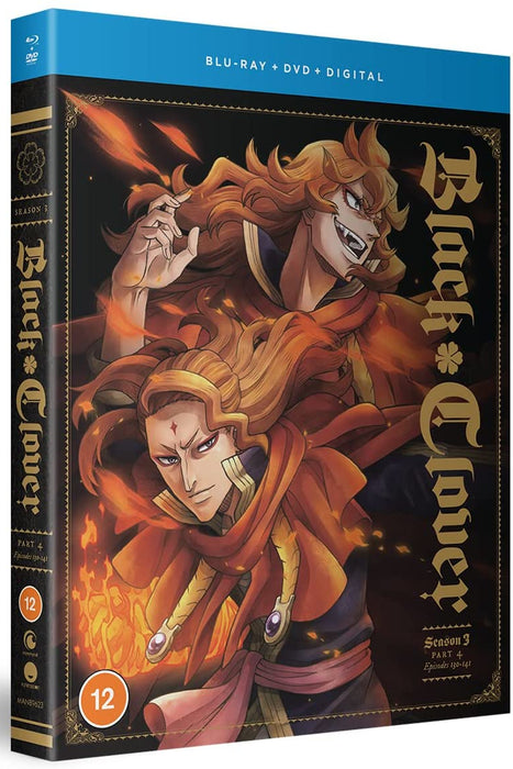 Episodes 130-141 from the third season of the Japanese anime which follows orphans Asta (voice of Gakuto Kajiwara) and Yuno (Nobunaga Shimazaki) as they make their way in the magical Clover Kingdom, both attempting to be crowned the Wizard King. The episodes are: 'The New Magic Knight Captain Conference', 'A New Resolve', 'The Lion Awakens', 'The Lion Awakens, Continued', 'Those Who Have Been Gathered', 'The One Who Has My Heart, My Mind, and Soul', 'A Black Deep-Sea Story', 'Charmy's Century of Hunger, Gordon's Millennium of Loneliness', 'In Zara's Footsteps', 'A Witch's Homecoming', 'A Favor for Julius' and 'The Golden Family'.