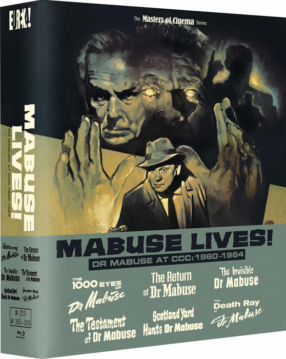 Fritz Lang made two of the defining works of early German cinema with Dr Mabuse the Gambler and The Testament of Dr Mabuse, two masterpieces centred on Norbert Jacques' nefarious literary supervillain. In 1960, Lang was charged by Artur Brauner's CCC Film with making a third crime thriller centred on the infamous Dr Mabuse, completing a trilogy nearly forty years in the making. A huge success, The Thousand Eyes of Dr Mabuse gave CCC the confidence to launch into an entire series focused on the master criminal between 1960 and 1964, with Wolfgang Preiss filling the title role. All six films are presented here alongside a wealth of new and archival extras. In Fritz Lang's final film The Thousand Eyes of Dr Mabuse, the eponymous master of disguise (Preiss) re-emerges in the Cold War era after a lengthy absence - and uses all manner of methods to incite murder and mayhem. The Return of Dr Mabuse sees him use brainwashed prison inmates to commit a litany of crimes while evading the German authorities and the FBI. In The Invisible Dr Mabuse, he seeks to use an amazing new invention - a device that renders the user invisible - to his own ends. The Testament of Dr Mabuse - a remake of Lang's earlier film - has the German police tying themselves in knots as they try to figure out how their adversary could be continuing his reign of terror from inside an asylum. In Scotland Yard Hunts Dr Mabuse, Mabuse's tentacles begin to creep across the English Channel. Finally, in The Death Ray of Dr Mabuse, the criminal mastermind comes to possess a weapon capable of unleashing untold destruction. Directed by Fritz Lang, Harald Reinl (Face of the Frog), Werner Klingler (Police Raid), Paul May (Duel with Death) and Hugo Fregonese (Black Tuesday), the CCC Mabuse series continues Fritz Lang's legacy while playing into a popular market taste in Germany for adaptations of literary krimis - or crime thrillers - that can also be seen in the enormous popularity of films based upon Edgar Wallace's novels throughout the 1960s. The Masters of Cinema series is honoured to collect all six of the 1960s Mabuse films together in this set, presented in high definition from 2K restorations.