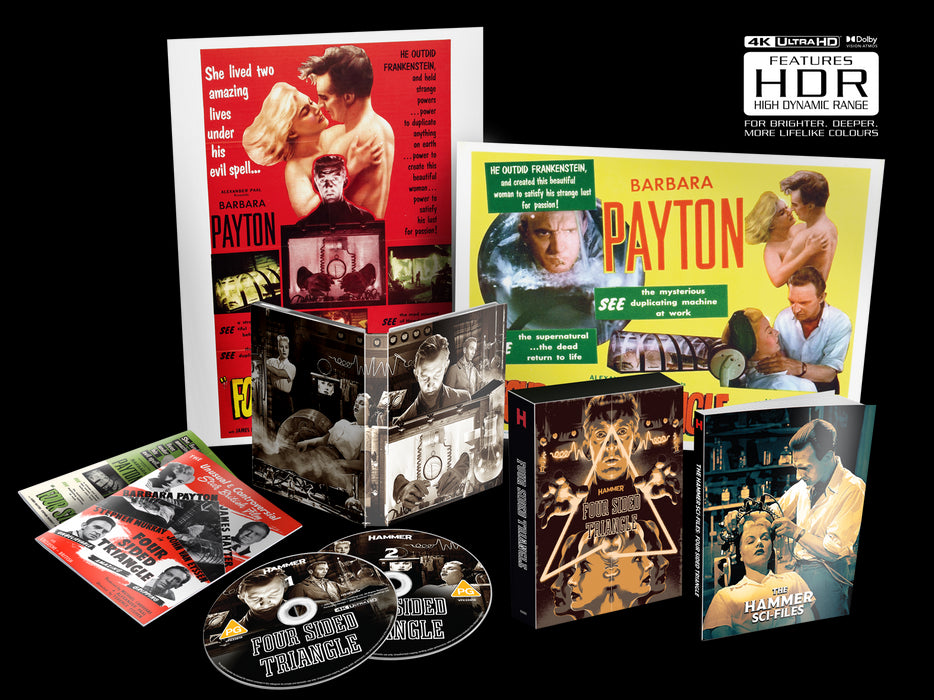 Hard-living Hollywood starlet Barbara Payton stars as a woman duplicated through technology in this cautionary tale that mixes Home Counties horror with prescient science fiction (Hammer's first). Co-starring Stephen Murray as the unbalanced scientist and directed by Hammer legend Terence Fisher, Four Sided Triangle is featured here as a brand-new 4K restoration from original film elements in its original theatrical aspect ratio. Lena returns to her home after many years to discover that her two childhood friends Bill and Robin are now scientists and have created a machine that can perfectly duplicate objects. Bill's heart is broken when he realises that Lena loves Robin - until he hits on the mad idea to duplicate Lena in his machine.