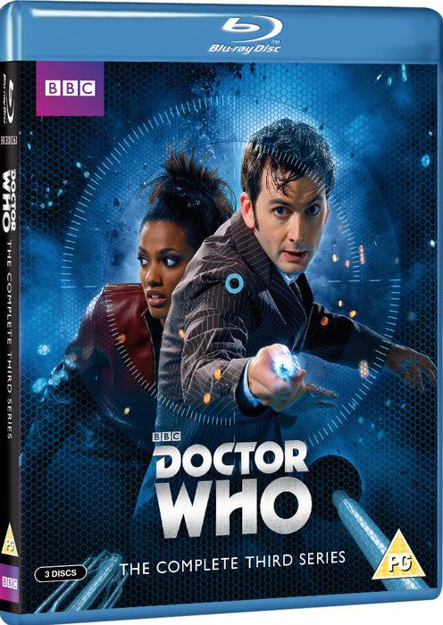All 14 episodes from the third series of the relaunched sci-fi adventure drama, starring David Tennant as the latest incarnation of the legendary Time Lord. In this series, the Doctor is joined by new companion Martha Jones (Freema Agyeman) as he encounters old enemies including the Daleks and the Master (Derek Jacobi). The episodes are: 'The Runaway Bride', 'Smith and Jones', 'The Shakespeare Code', 'Gridlock', 'Daleks in Manhattan', 'Evolution of the Daleks', 'The Lazarus Experiment', '42', 'Human Nature', 'The Family of Blood', 'Blink', 'Utopia', 'The Sound of Drums' and 'Last of the Timelords'.