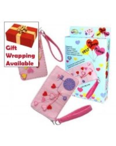 A kit containing felt and accessories to make a very cute zip up coin purse.