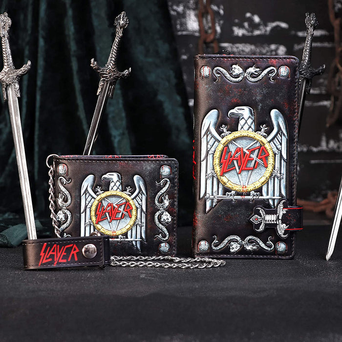 Pay homage to the thrash metal gods with this officially licensed embossed wallet, designed by alternative brand Nemesis Now’s fantastic design team! This wallet is emblazoned with the band’s distinctive eagle and swords logo which instantly brings to mind Slayer’s fast tremolo picking, double bass drumming and shouted vocals. Perfect for keeping your money safe when you're headbanging!