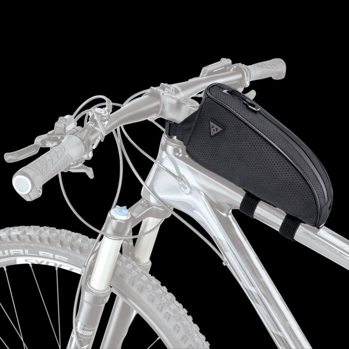 TopLoader is a large capacity top tube mounted bag giving bikepackers quick and easy access to energy bars, phone, wallet, tools or any small essential gear they need close at hand.