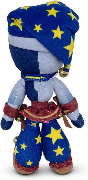 “It's past your bedtime, you must be punished!” Moon makes their returns to Youtooz to make sure you’re obeying the rules! Standing at 9 inches tall with bright red eyes and a cheeky curling smile creeping up over a two tone grey and blue face. Their long star patterned hat dangles down to the side and ends in a golden bell that matches the two that are attached to their wrists, which lay out by their sides. With a frilled blue and yellow neck piece and ruffled brown waist, their puffy blue pants expand at the end and are finished with curling brown shoes.