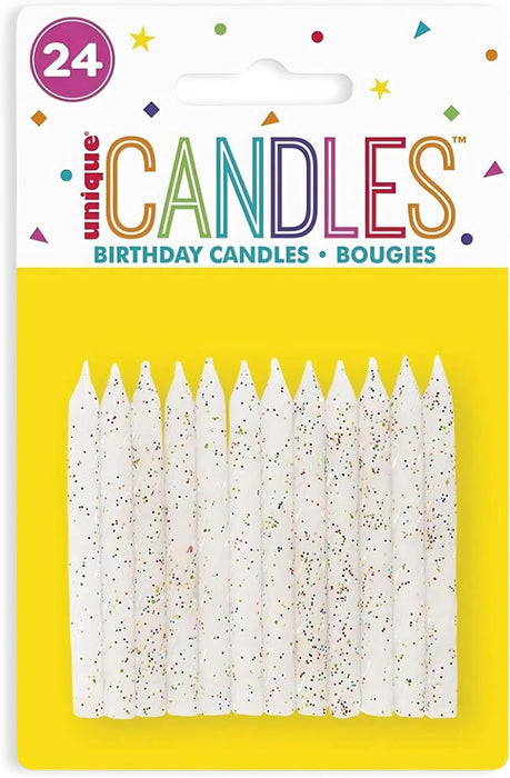 Unique Party 19974-White & Glitter Spiral Birthday Candles, Pack of 24, White