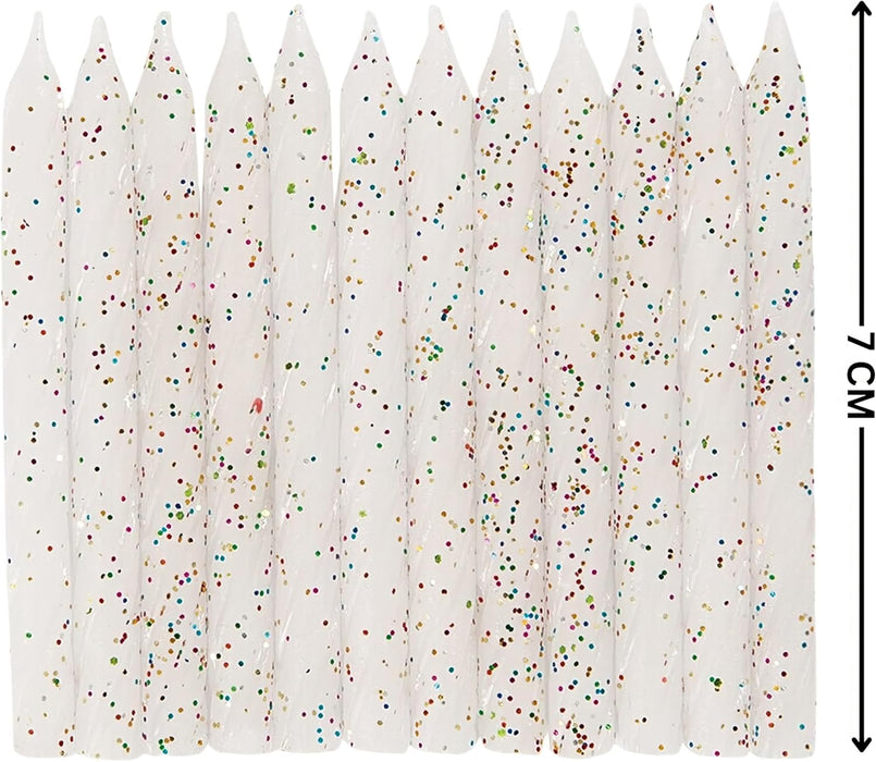 Put a fun twist on a birthday classic with these White & Glitter spiral birthday candles. Featuring a cool spiral design and sparkly finish, these cake candles are ready to add charming style to any birthday party. Use them to instantly spruce up your celebration cake, whether it’s a traditional birthday cake or a batch of cupcakes.