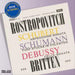 A LEGENDARY DECCA CHAMBER MUSIC RECORDINGMARKING MSTISLAV ROSTROPOVICH'S 80TH BIRTHDAY - 27th March 2007On every count this is a triumphant record . it offers us Rostropovich's own superb playing . admirably partnered by Britten (who shows himself an outstanding chamber music pianist by any standards). a splendid performance of the Debussy Sonata . technically too, the recording is impeccable . The Schumann - a slight work which, in other hands, can be rather humdrum - gives us the opportunity of admiring the cellist's ravishing cantabile and his finesse of rubato and of tonal gradation. the Debussy is notable for its sensitivity, fluidity and fantasy, and for the remarkable rapport which evidently exists between these two artists: the finale in particular drew forth a spontaneous cry of "Bravo!" from me" . "supremely beautiful playing from both cellist and pianist, with never a dead note in even the most incidental bit of figuration [Schubert] . the engineering is superb: the sound is glorious, and so true to life that if you shut your eyes you can imagine the players in your own room".GramophoneJanuary 1962 & October 1970