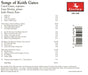 Songs of Keith Gates. Psalm 121nnDescriptionnPsalm 23; Lorica; Prayer; Three Songs to Texts by Women Authors; On the First Day of the Week; who is a God Like Our God; Orfano; Wanderers Night Song; Willow Song; Willow Song; The Barren one; When Hope Still Had Its Chance; Carol Lines, soprano; Lina Morita, piano; Judy Hand, flute