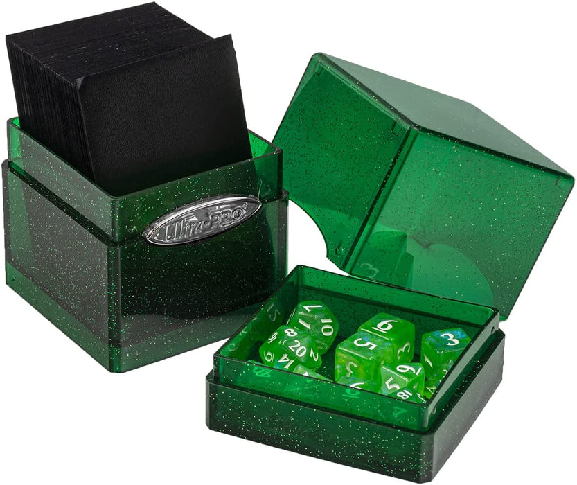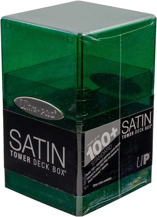 Ultra PRO - Satin Tower 100+ Standard Size Card Deck Box (Green Glitter) - Protect Your Gaming Cards, Sports Cards or Collectible Cards In Ultra Pro's Stylish Glitter Deck Box Green Glitter Tower