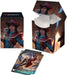 The 100+ Deck Box card storage container features vibrant, full-color artwork from Magic: The Gathering and includes a deck divider. Made with archival-safe, non-PVC, rigid polypropylene materials, you can store up to 100 double-sleeved cards with confidence. The self-locking lid keeps your cards securely stored when not in use, while also offering easy access. Sized for standard size trading cards.