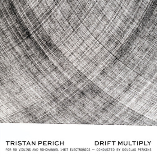 'Drift Multiply', Perich's largest work to date, is performed by fifty violins and fifty loudspeakers and is conducted by Douglas Perkins. Scored as one hundred individual lines of music, the piece blends violins and speakers into a cascading tapestry of tone, harmony, and noise. The violins perform from sheet music, while the speakers are each connected to custom-built circuit boards programmed to output 1-bit audio, the most basic digital waveforms made of just ones and zeroes.
