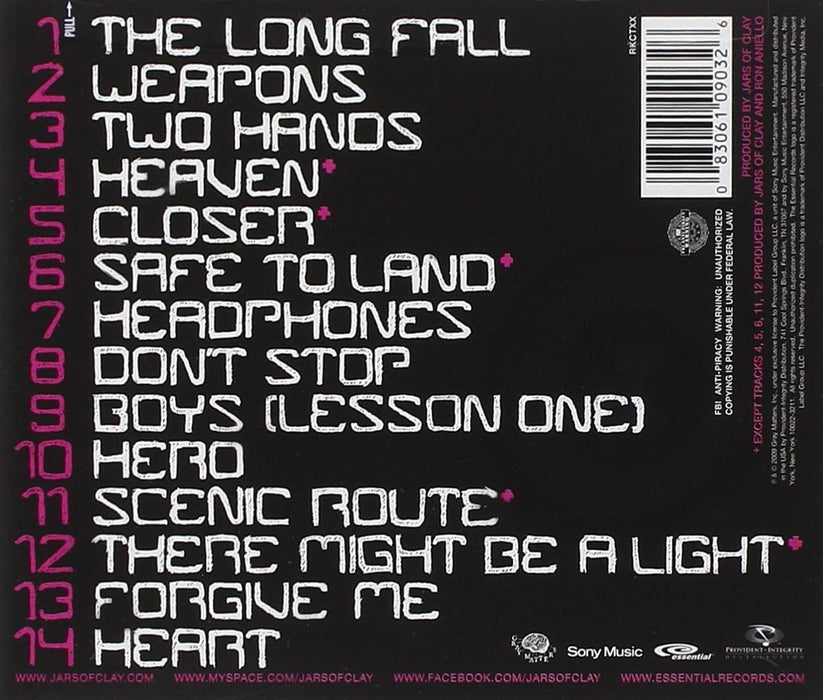 Acclaimed rock band Jars Of Clay, known for their innovative, intelligent music and humanitarian work worldwide, have delivered their 10th studio album 'The Long Fall Back To Earth'. This 14 track follow-up to their 2006 album 'Good Monsters' seamlessly segues in themes from the concept of digging into community on their last album, to the day-to-day experience of being within community. Lead vocalist and lyricist Dan Haseltine capitalises on his ability to write reflective and engaging songs that explore reallife issues. Haseltine delves into the bare bones reality of the beauty and tension of relationships and what makes them worth fighting for; a common thread for every listener. 'The Long Fall Back To Earth' melds compelling lyrical content with hints of an upbeat 80s influenced, synth-driven flavour. Anthemic, arena-swelling textures and the band's trademark vocals amount to the biggest sounding Jars Of Clay project yet.