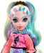 School is back in session, and the Monster High ghouls are showing up in scream-tastic style! Lagoona Blue doll struts down the Monster High hallways in a fin-tastic fashion featuring a hot-pink hoodie with mesh sleeves and a trendy, tie-dye bike shorts romper. Her gore-geous look is complete with a sea monster-inspired waist bag, seashell backpack, colorblock platform sandals and freaky-fabulous fin details inspired by her unique scaritage. Switch up Lagoona Blue doll's look with a "metallic," fish scale-detailed swimsuit, and inspire spooktacular storytelling with fearsome accessories and her creepy-cute pet fish, Neptuna! Doll cannot stand alone. Colors and decorations may vary.