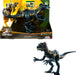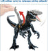 • Pull up either arm to make the Indoraptor's head rotate to the other side and release the arm to STRIKE! These left and right side strike attacks trigger roaring sound effects and make the red eyes glow!