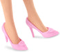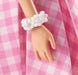 - She looks just like film Barbie with her daisy chain necklace! An adorable pink bracelet and heart-adorned pink pumps complete her look.