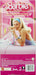 - Barbie doll models a vintage-inspired pink and white gingham dress with a matching belt and full, pleated skirt.