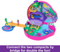 Swing into Polly Pocket fun with this adorable Sloth Family 2-in-1 Purse Compact! The purse exterior is shaped like a momma sloth with a baby sloth compact latched onto her belly! Both momma and baby sloth open to reveal tropical jungle themed playsets with 2 micro dolls and 12 accessories (including 8 pets)! The two compacts connect by bridge for the ultimate 2-in-1 play experience. Zoom along the zipline with a toucan friend in the momma sloth compact or open the sloth tent to reveal a comfy hammock. Make a splash and go for a spin in the waterfall pool! Then, walk over the bridge to the baby sloth compact and find a secret beach to pick bananas or go for a boat ride! When it's time to go, latch the two compacts and use the purse strap to play anytime, anywhere! The perfect gift for ages 4 years old and up, especially those who love animals! Colors and decorations may vary.