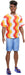 - Ken fashion doll wears a cool outfit that pops with a groovy orange and yellow pattern on his shirt and blue shorts.