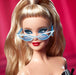 - Her waterfall ponytail, cat-eye sunnies, blue eyeshadow and red lips pay homage to the first Barbie! Long black gloves add an extra touch of elegance to her stunning look.