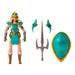 - Teela is helmeted and well-equipped with a Turtle-inspired shield, Sai-style sword, and savage-looking armor: a fur-adorned chest/shoulder harness, skirt armor and wrist bracers. Her head and armor are removable.