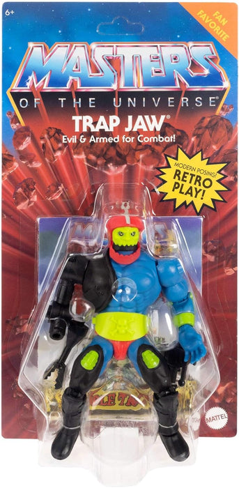 - This Masters of the Universe Origins 5.5-inch scale action figure of Trap Jaw will take fans on a nostalgic trip back to the 1980s with his vintage look. His 16 articulated joints provide modern posability.
