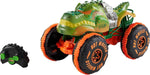 - Press the button on the remote control to send the Rageasaur into wheelie mode, where it pops up on its rear tires and spins.