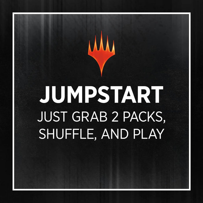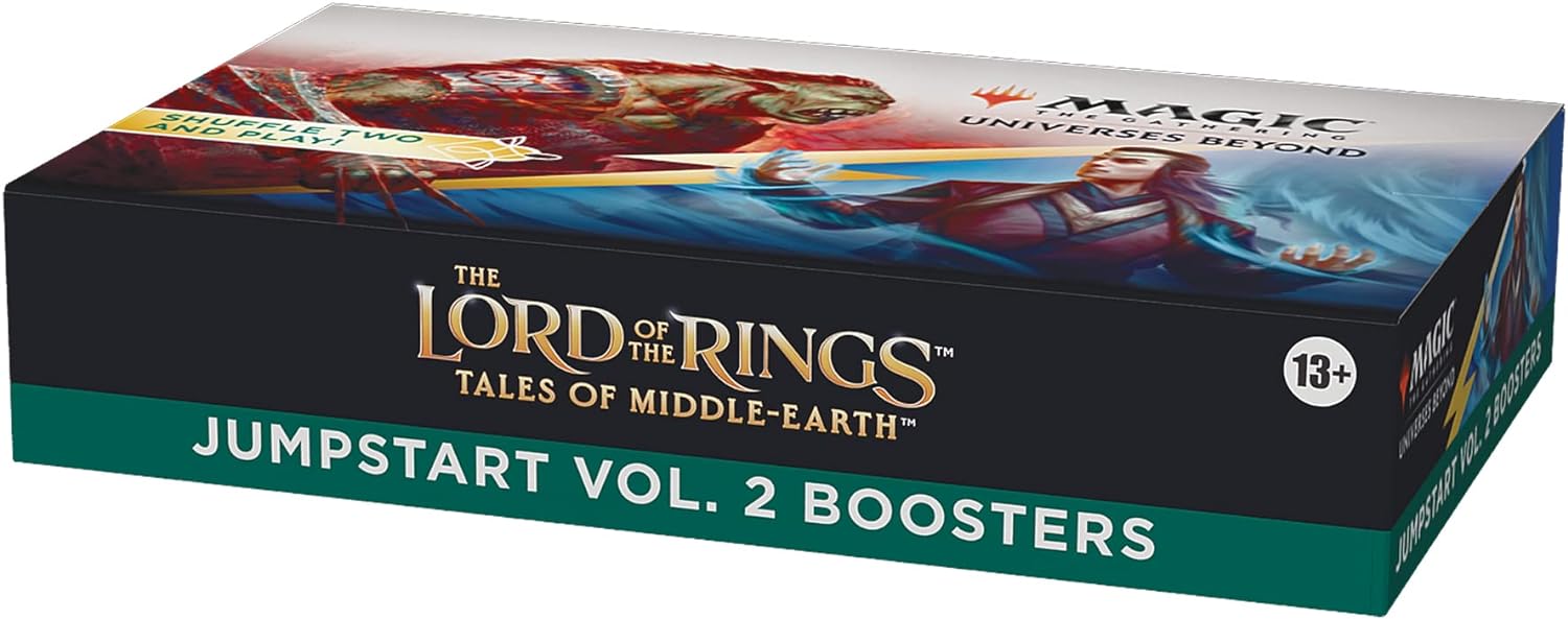 The Lord of the Rings: Tales of Middle-earth Jumpstart Vol. 2 Booster Box contains 18 The Lord of the Rings: Tales of Middle-earth Jumpstart Vol. 2 Boosters. Each booster has a theme. Just grab two packs and shuffle them together for wild combos and a unique gameplay experience that’s great for a quick game, for long-time fans looking to jump back in, or for a fun way to learn to play. Each The Lord of the Rings: Tales of Middle-earth Jumpstart Vol. 2 Booster contain 20 Magic cards (including all the lands you need to play). In every pack, you’ll find 2 Rare cards (1 Rare card designed for Jumpstart boosters and 1 Rare or Mythic Rare from the main set), and 2 Land cards with a shining Traditional Foil treatment. This product does not contain Serialized Ring cards, including the Serialized Elven, Dwarven, or Human Sol Ring cards, and The 1 of 1 Ring (Serialized 001 of 001). Serialized Elven, Dwarven, and Human Sol Ring cards can only be found in some The Lord of the Rings: Tales of Middle-earth Collector Boosters. Only one card has been printed of The One Ring (Serialized 001 of 001), and this card can only be found in one English-Language Collector Booster. Non-serialized Ring cards are mechanically identical to their Serialized versions. If you’re looking to maximize your mashups, The Lord of the Rings: Tales of Middle-earth Jumpstart Vol. 2 Boosters can be combined with packs from any other Jumpstart product.