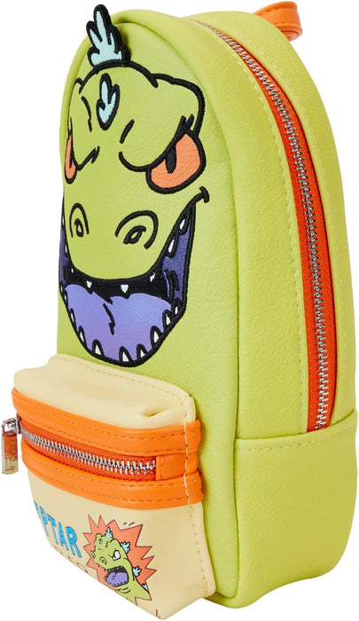 Monster, hero, mascot… this giant green dinosaur can do it all! This textured pencil case inspires a scaly feel worthy of the one and only Reptar. A candy bar wrapper appears on the front pocket, and embroidered details bring Reptar’s ferocious facial features to life. Bring this larger-than-life reptile along on your next adventure to add some nostalgia to your notetaking endeavors!
