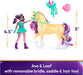 Celebrate the bond between rider and unicorn with the Unicorn Academy Ava & Leaf Set. Inspired by the NETFLIX animated show and best-selling book series where friendship reins, this set will spark endless imaginative storytelling. 11.4cm Ava features realistic true-to-show details and 7 points of articulation for dynamic poses. Leaf stands at 12.7cm tall, complementing Ava’s look with Plant Magic markings and brushable purple and teal mane and tail (brush included). As you play, pose Ava to sit on Leaf and ride into adventure. With the removable bridle and saddle accessories, Ava can securely stay in place on Leaf. For more ways to experience Unicorn Academy with your favourite characters, look for the other small dolls, including Sophia, Layla, Isabel, Valentina and their unicorns (sets sold separately) and expand your world. For kids who enjoy unicorns and horse toys, dolls and accessories, doll house play, collectibles, plush toys and more, Unicorn Academy toys are fun birthday gifts for girls or gifts for any occasion. Experience enchanting Unicorn Academy adventures with the Ava & Leaf Set.