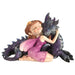 • Cuddling Fairy and Dragon Figurine: A small auburn-haired fairy kneels alongside her dragon-friend as a small garland of yellow flowers decorates her hair and she rests her head on the dragon's cheek