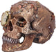 Covered in arcane and mysterious mechanisms, this skull has been modified almost beyond recognition. The right eye socket of the skull has been modified to fit a small clock while the other is filled with a complicated contraption. The skull itself is cast in resin and has been given a distressed finished with the additional mechanical enhancements also cast in the same bronze resin.