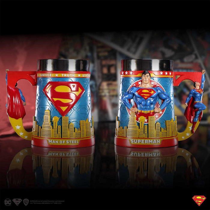 Nemesis Now Taza de cerveza Superman, diseño exclusivo, fundida en la mejor resina, pintada a mano por expertos, inserto extraíble