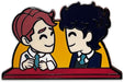 In this box is a variety of 6 different enamel pins that each measure 2 inches in height with a shiny and high quality finish. The collection includes a rugby ball, 2 milkshakes in front of a heart, a school branded backpack, 2 conversation bubbles saying hi, Nick and Charlie's first time meeting, and a polaroid photo of Nick and Charlie!