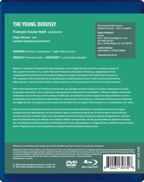 The evocative music of Claude Debussy has been described as the foundation of modern music. But how did the composer come to develop his unique style? On this video, maestro Francois-Xavier Roth and the London Symphony Orchestra present the UK premiere of a previously lost work by the young Debussy, alongside some of his earliest inspirations. Debussy's newly discovered Premiére Suite gives a rare insight into the mind of a young composer on the cusp of innovation. It's a work filled with Romantic and Eastern influences and glimpses of the unexpected harmonies that came to define Debussy's work. Paired alongside the composer's role models - from Wagner's powerful intertwining motifs, the abundant Spanish influences in Lalo's rarely-heard Cello Concerto performed here by Edgar Moreau, and Massenet's majestic Le Cid - Francois-Xavier Roth gives a fresh perspective on the much-loved composer.