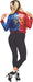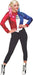 This Harley Quinn costume for women is an official licensed product of Suicide Squad. It consists of a jacket with built-in T-Shirt (without wig, trousers and shoes).The grey melange t-shirt is directly below the jacket sewn on. To It is the sign daddys lil monster on it. The collar is red.The jacket is red and blue. One side is completely red, the other with sleeves is completely blue. It is made of shiny satin fabric. A brown fabric insert on the end of the jacket is of the base, to mimic the zip. On the back is the big property of Joker. The fabric of the top is elastic.This upper part is perfect for making a Harley Quinn costume to the next Mardi Gras to complete it.