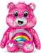 Basic Fun Care Bears Cheer Bear Collector Edition: 35cm Care Bears Plush Toy with Light-Up Shiny Belly Badge, Heart-Patterned Fur, Perfect for Collectors & Snuggles