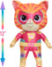 - Super Character Details: Made of soft mixed fabrics with printed, embroidered, and appliquéd details, this colourful, deluxe Ginny plushie features orange and pink tabby stripes, a pink hero mask with matching spandex suit, and sparkly purple plastic eyes.
