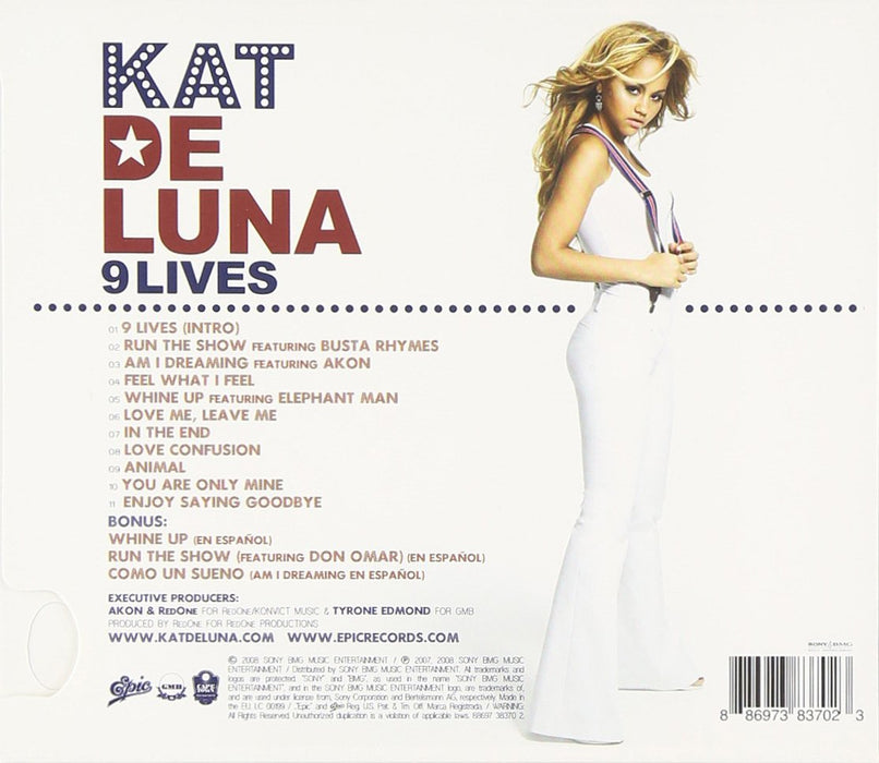 Mélange imparable de Hip Hop et de R&B teinté de Pop latine, son 1er tube radio «Whine up», né d'un buzz spontané sur internet, a révélé la jeune artiste Kat DeLuna à une carrière internationale prometteuse en la classant dans les meilleurs ventes du TOP single (#9) et de l'airplay radio (#5). Ce premier album «9 Lives», produit par Akon, contient de nombreux featurings de choix (Busta Rhymes, Akon, Elephant Man), et le second single «Run the show» grimpe déjà dans l'airplay radio pour s'annoncer comme un nouveau succès.