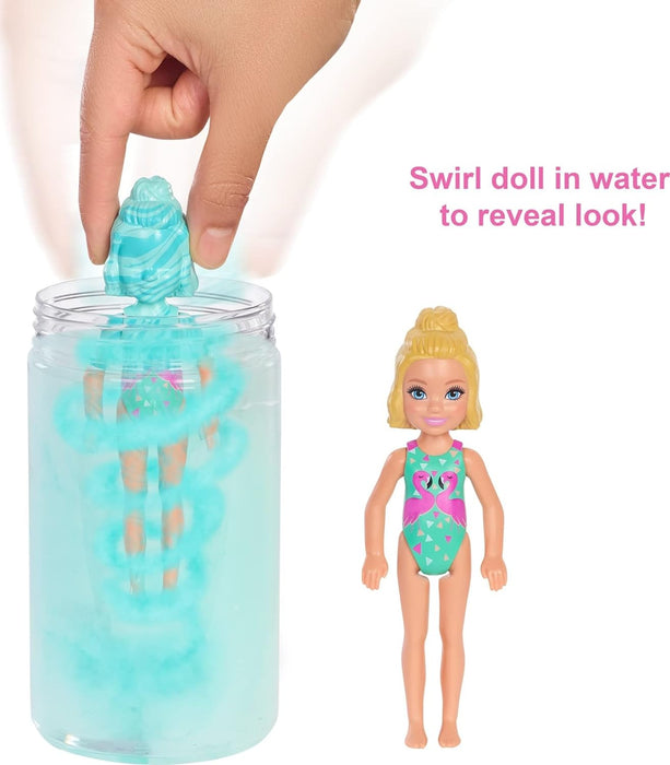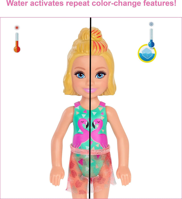 Barbie GTT25 Chelsea Color Reveal Doll with 6 Surprises: 4 Bags with Cover-Up, Shoes, Towel & Accessory, Multicolor, 15.88 cm*8.4 cm*8.4 cm