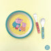 A pretty five-piece set, with a plate, a bowl, a drinking cup and a set of two cutlery. The whole set is super suitable for small hands! It is an ideal gift box for birthdays.