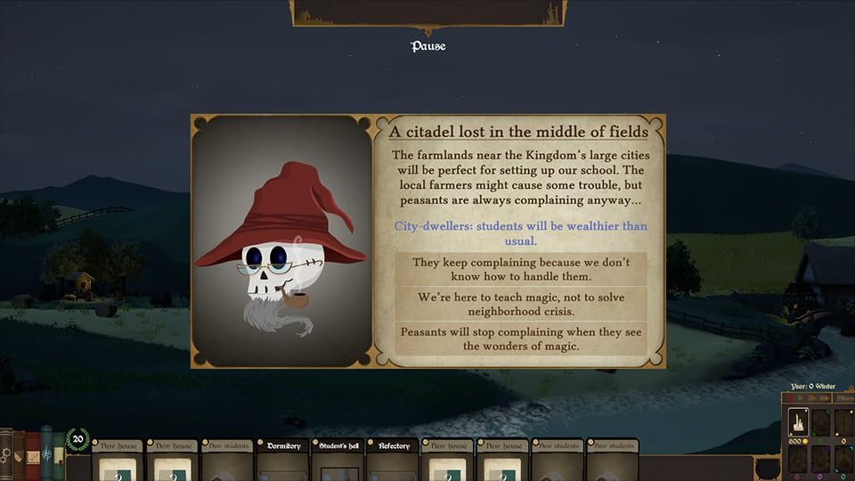 In Spellcaster University, youtake on the role of the director of a magic university in a colourfulworldof heroic fantasy. Build your school, manage your budget, recruit teachers. Will you turnit into a blackmagic academy, with the best professors of necromancy and demonology? Oraplace in harmony withnature to train druids and shamans? Or why not train adventurousmages, offering them options tolearn how to fight and be stealthy? But this will requiresurviving the ruthless attacks of the orc tribesand the controls of the education authorities.