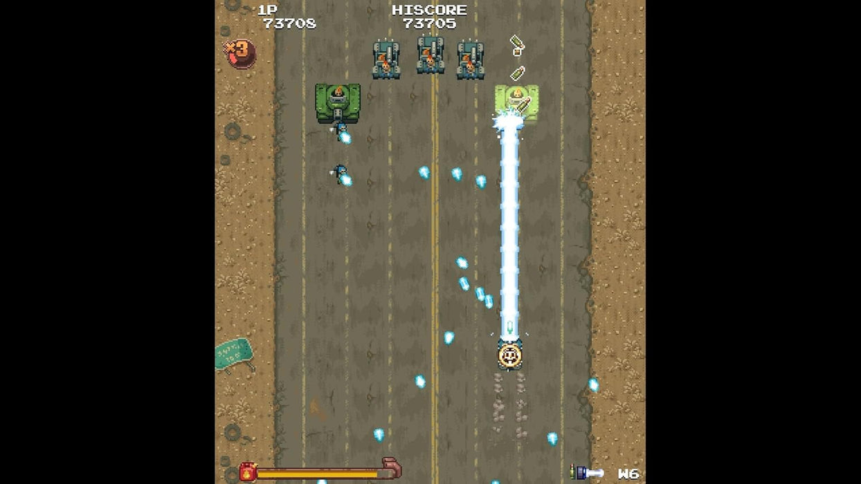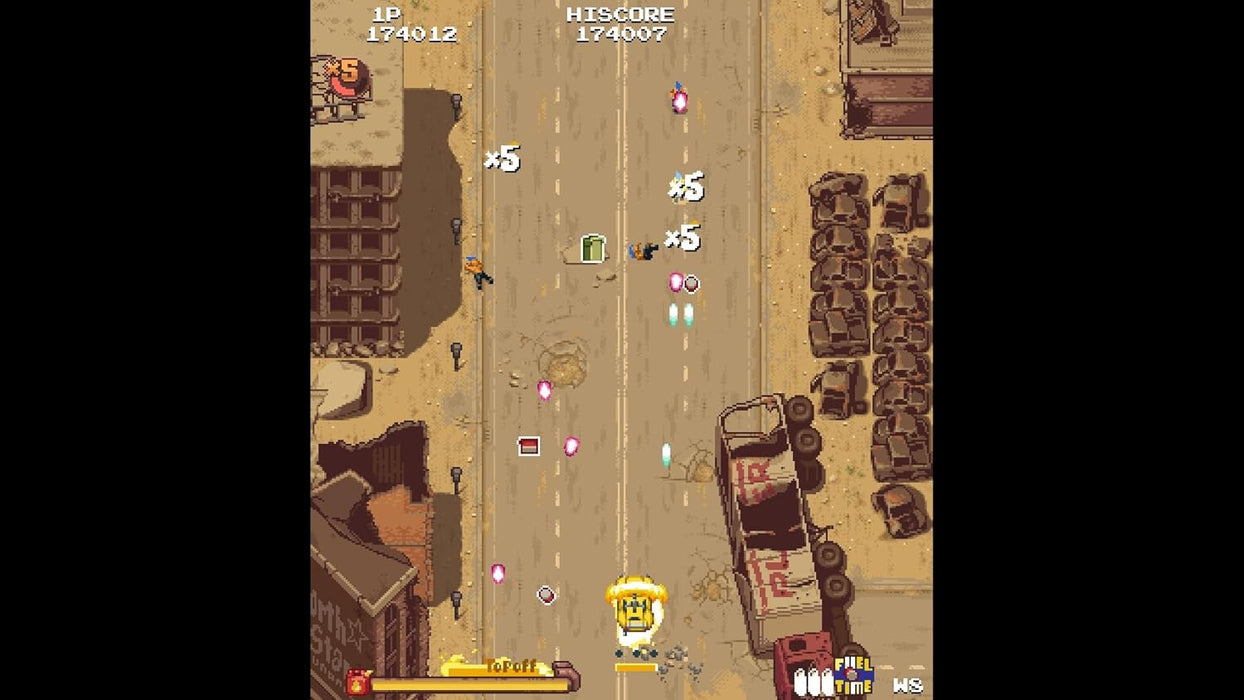 Dead End City is a post-apocalyptic vertical shooter. You drive a heavily armed car (called a Chariot) into the wastelands to rescue your loved ones from Scorpio, a gang that has conquered what is left of humanity. Fuel is always draining away, so be careful to collect as much as you can or your journey willcome to abrupt end. Relive the thrill of 90’s arcade shooters. Civilisation has fallen and the few remaining survivors are now the playthings of a gang of post-apocalyptic punks called Scorpio. Your little slice of heaven was raided and your loved ones carried off to Scorpio’s main stronghold. With nothing left to lose, you head out onto the open road, armed to the teeth and ready to fight through their territory to bring an end to their reign.