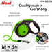 With the flexi leash New Neon, even in low light, your dog and you will see you from afar, since, on both sides of the black casing, two reflective adhesives are located. In addition, the lock button, the safety clip and ribbon are a striking neon color, which will give greater security when you miserable time at dusk, at dusk or during dark winter evenings.
