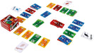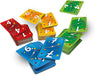 "In Ligretto, each player has their own deck of forty cards, with cards 1-10 in four colors and a unique symbol on the back to identify which cards are theirs. At the start of each round, each player lays out 3-5 cards (depending on the number of players) face up in front of them to create their row; places a face-up stack of ten cards, seeing only the top card, next to their row to create their Ligretto stack; and holds the remaining cards in hand face down. Playing at the same time, each player tries to empty their Ligretto stack. If a player has a 1 card on top of any face-up stack, they play it to the center of the table. If they have a 2 card of the same color as any 1 in the center of the table, they can place the 2 cards on the 1. All cards in the central piles must be played in ascending order and must be the same color. If a player can't play anything, they can reveal cards from the stack in their hand, counting them out in groups of three, then laying them face up while revealing only the top card. They can play this top card onto a central pile if the rules for doing so are met. As soon as a player empties their Ligretto stack, the round ends. Each player scores 1 point for each of their cards among the central piles, then loses 2 points for each card remaining in their Ligretto stack. In some versions of the game, the player with the highest score wins; in other versions, players then sort all the cards and play another round, with the first player to reach 99 points winning. A rules variant for Ligretto allows a player to play cards from their Ligretto stack or the cards in hand onto the cards in their row, but only if the numbers are in descending order and the colors of adjacent cards are not identical."