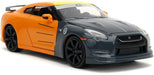 Jada- Naruto Coche Nissan GT-R 1:24 die-cast, rueda libre, apertura de puertas, capó, maletero, figura de Naruto die-cast (253255054