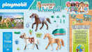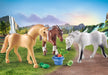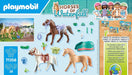 - Detailed playset with three PLAYMOBIL horses, a Morgan, a Quarter Horse and a Shagya Arabian, saddle blanket, curry comb set, saddle, bridle and many other accessories for horse care
